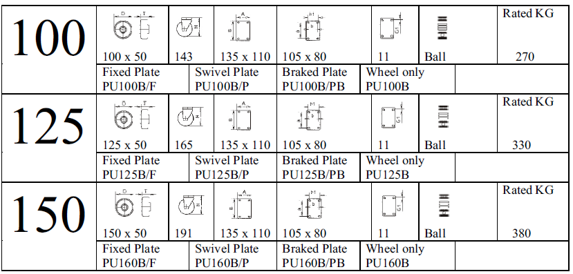 | Castor Type | Steel, Zinc plated |